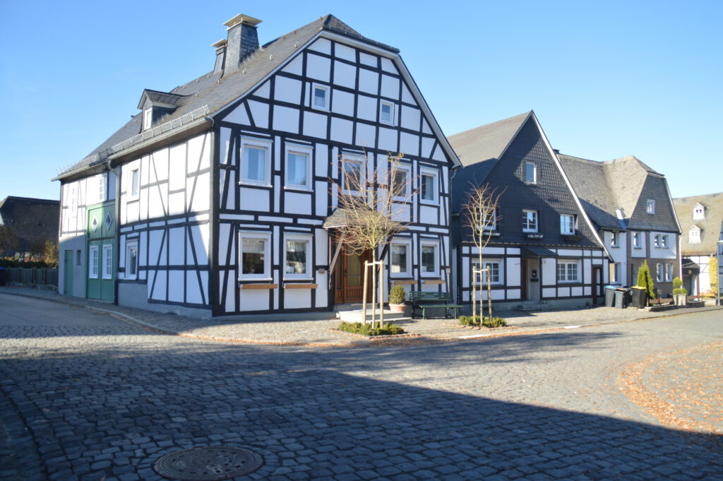 Ausgangspunkt ist der historische Ortskern von Meschede-Eversberg. Hier gibt es typisches Sauerländer Fachwerk zu sehen.