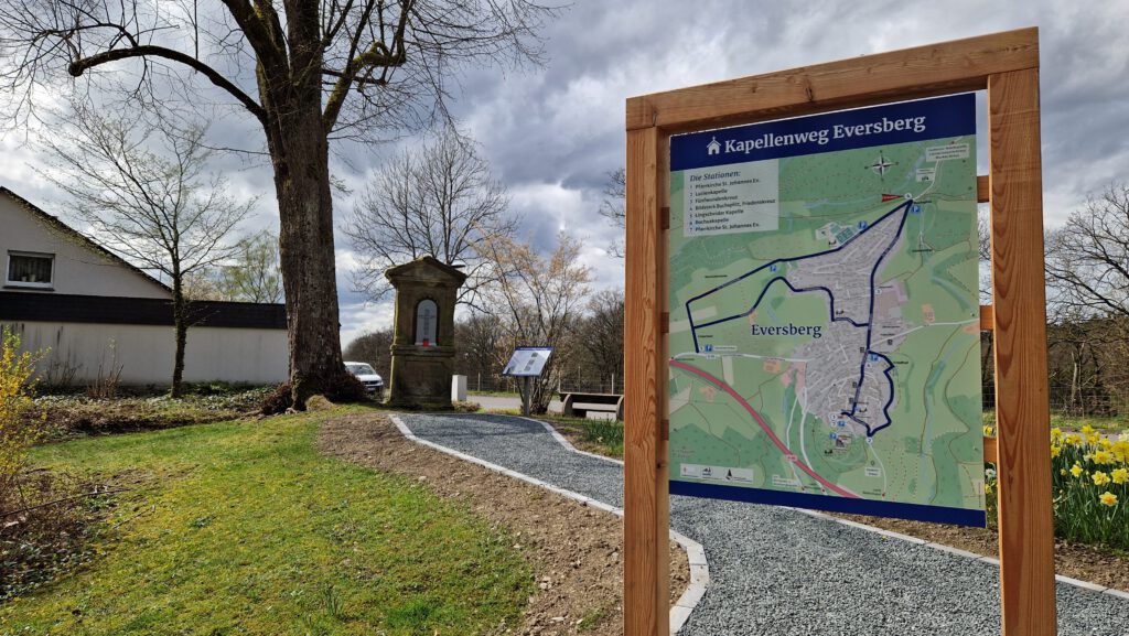 Der Kapellenweg Eversberg verbindet auf 6,5 km sehenswerte Kapellen, Wegkreuze und Bildstöcke um die alte Bergstadt Eversberg.