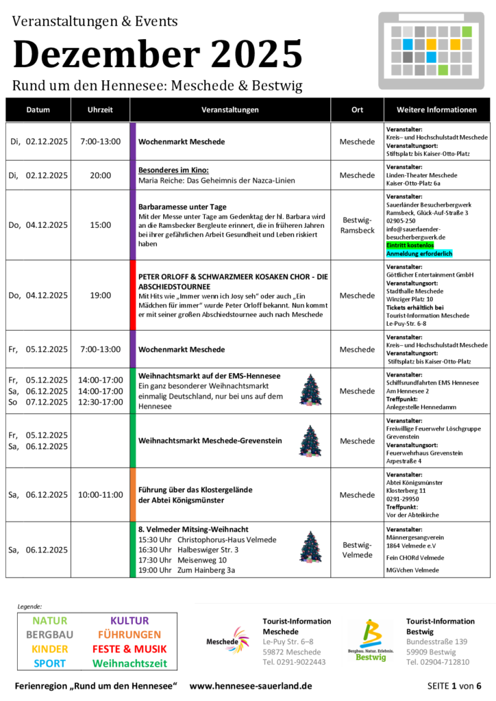Das ganze Jahr über finden im Feriengebiet rund um Bestwig und Meschede vielfältige Veranstaltungen statt.